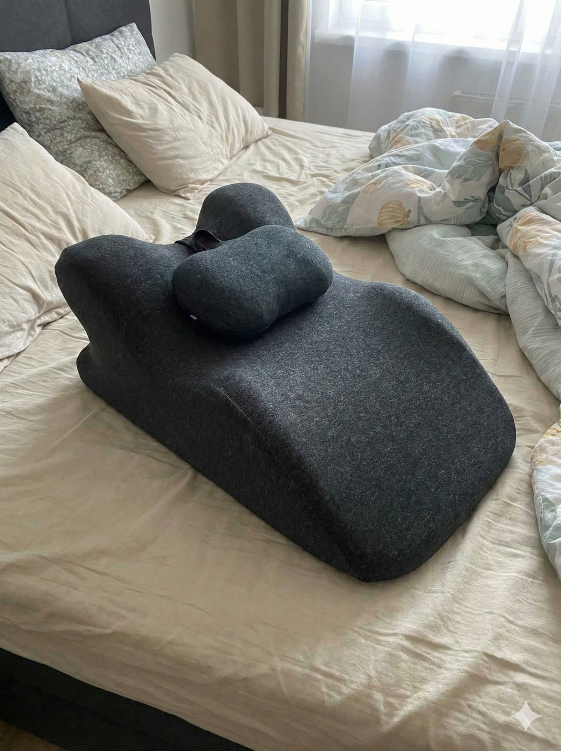 Połączyliśmy zaawansowaną ergonomię z pragnieniem głębszej relacji. Nasza poduszka to sekret dłuższych i bardziej urozmaiconych sesji, stworzona po to, by całkowicie wyeliminować dyskomfort.